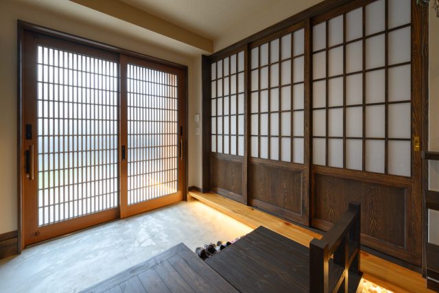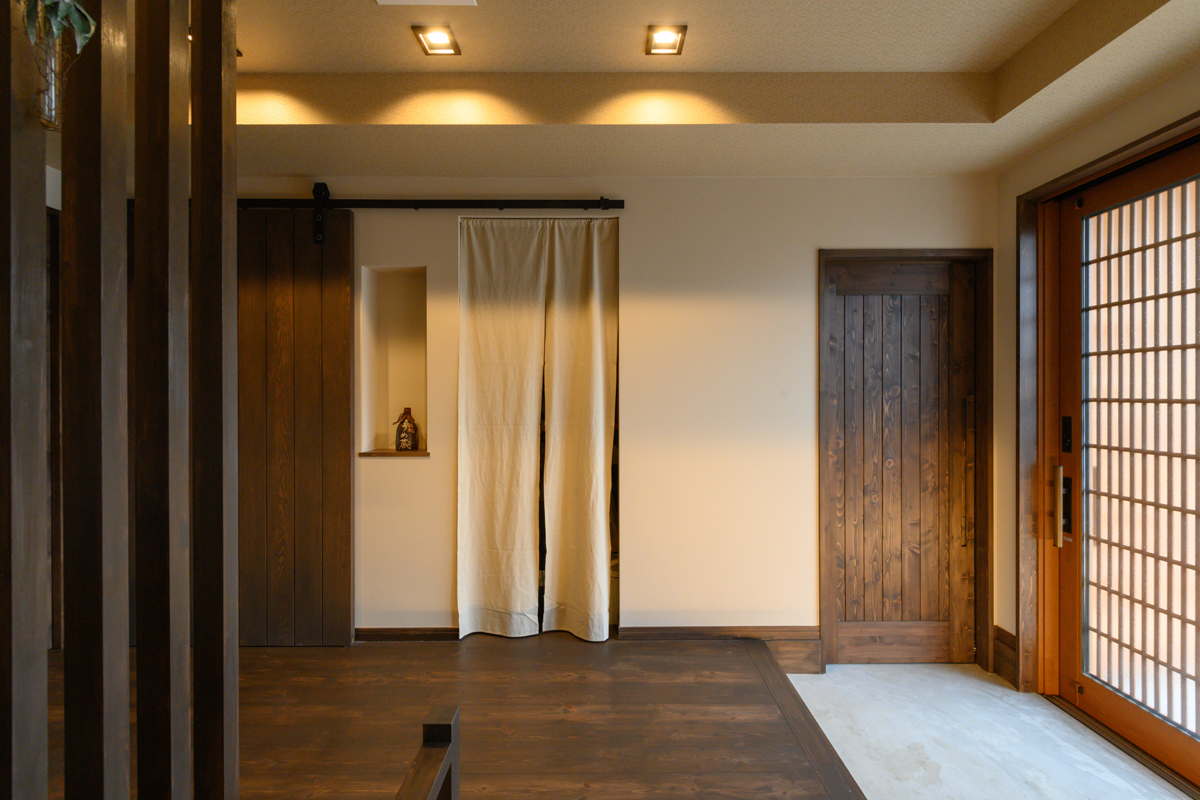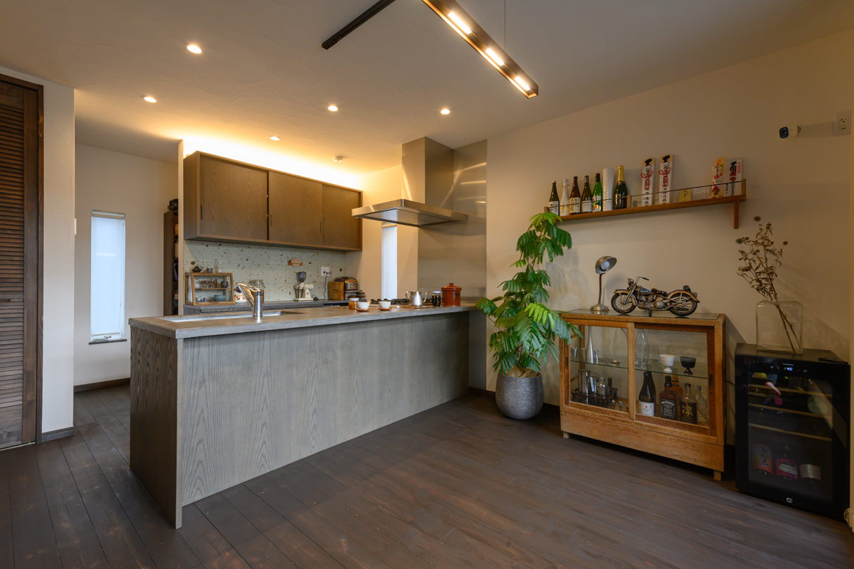 新築 花鳥風月 シンプルモダンな外観と和をベースとした2階インナーテラスのあるスキップフロアの家 DETAIL 越谷市 U様邸 5LDK+ロフト(143㎡43.2坪) ・吹き抜けリビング ・オーダー対面キッチン ・堀こたつがある和室